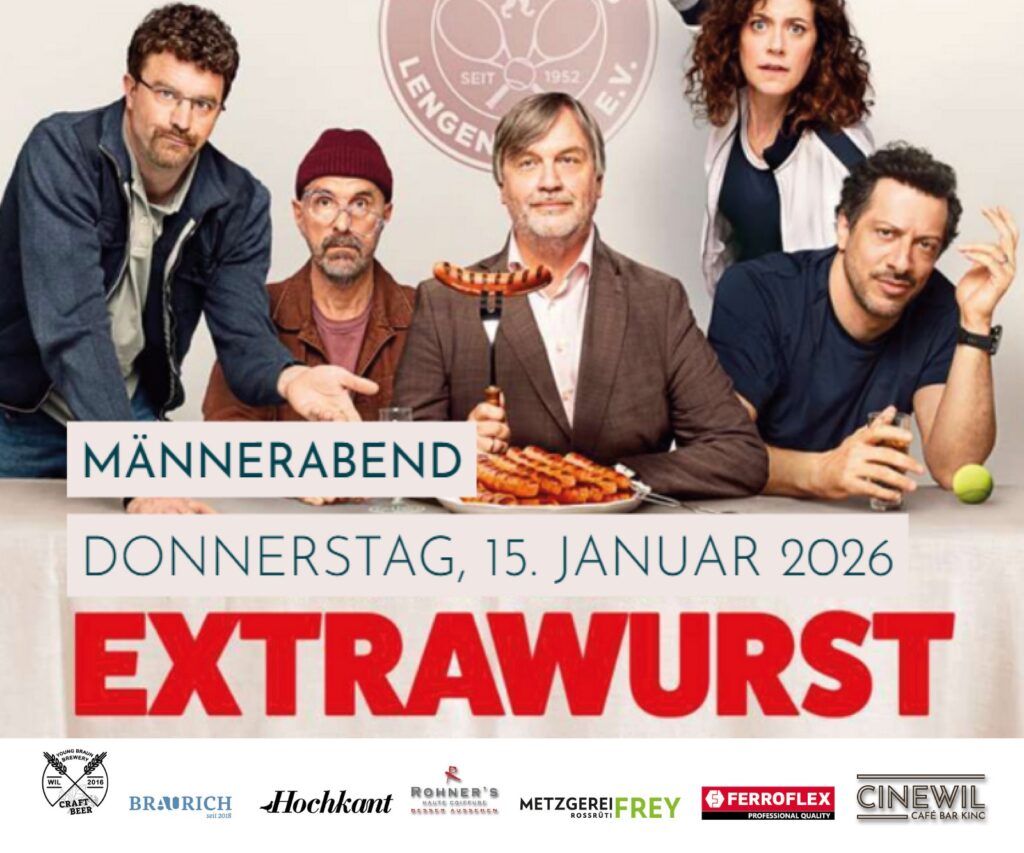 Nach der Sommerzeit endlich wieder warm und angenehm im Kino sitzen. Der nächste Männerabend mit einem wirklich sehenswerten Film! Die drei Wiler Brauereien Braurich, Young Braun Brewery und Hochkant sind mit ihren Bieren wieder dabei, und für den Appetit serviert die Metzgerei Frey, Rossrüti feine Fleischspezialitäten.